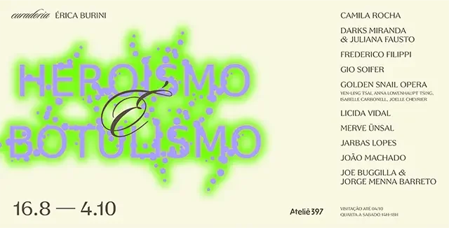 ‘“Heroism is Botulism.” An unusual title announces our next collective exhibition, which opened on August 16, curated by Érica Burini. The exibition addresses the climate emergency of our times through the lens of the need for change in the way stories are told in the West.